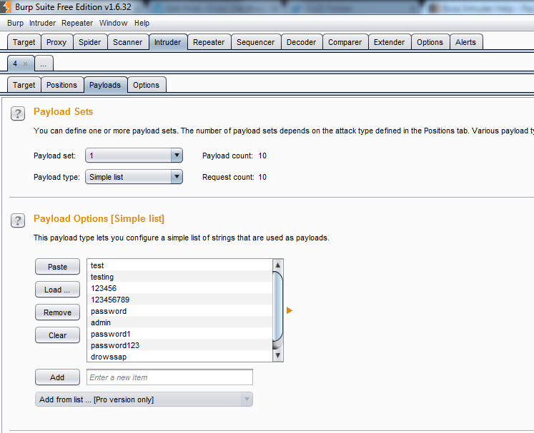 Now that the positions are set, we can start and to do that move to the Payload tab and set what data will be used during the attack process. On the top, you will see the payload set.