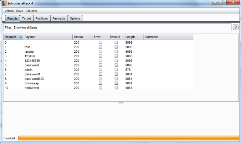 Note: The free version of Burp Suite severely throttles intruder. The pro version is significantly faster.