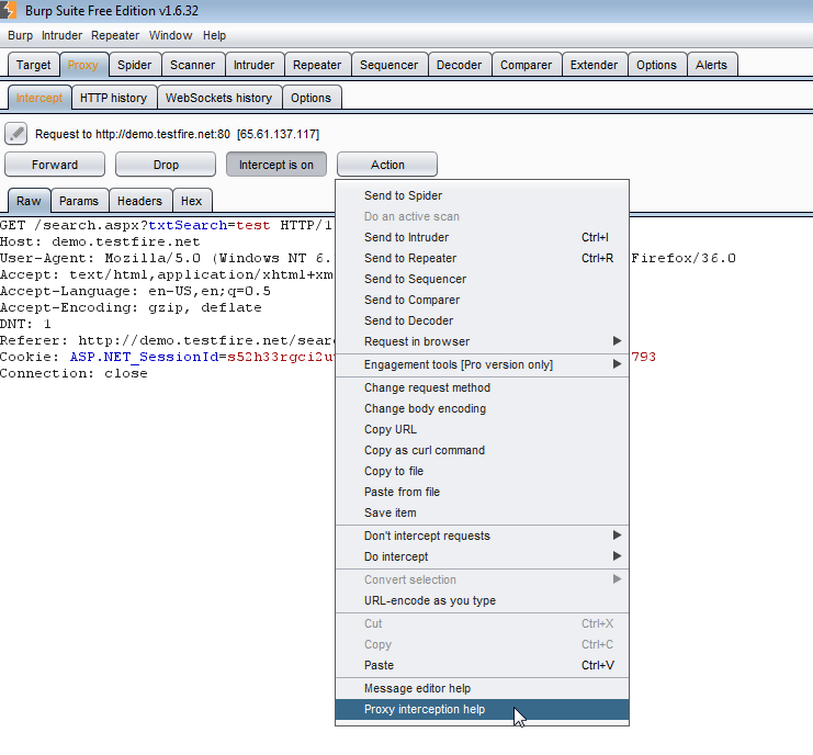 Now you can modify the request and forward it to the target application and also there is a lot of more options under Action which you can use to further testing.