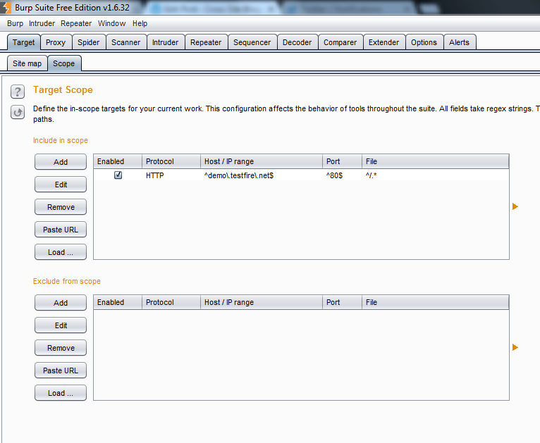 All the domains which you will add to the scope you can see them in Target > Scope and in here you can also add domains manually or modify previously added domains or all those domains which need to exclude from the test (for example, if you want to avoid running automated tests against an ‘About Us’ form):