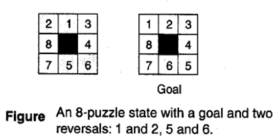 Among these three “sum of distance” indeed seem to provide a more accurate estimate of the work to be done than the simple count of the number of tiles out of place. Also, the tile traversal heuristic fails to distinguish between these three different states, giving each an equal evaluation of 0. Although it is an intuitively appealing heuristics, it breaks down since none of these states have any direct reversal. After discussing all these, we come up with a fourth heuristic that is basically the sum of second and third heuristic.