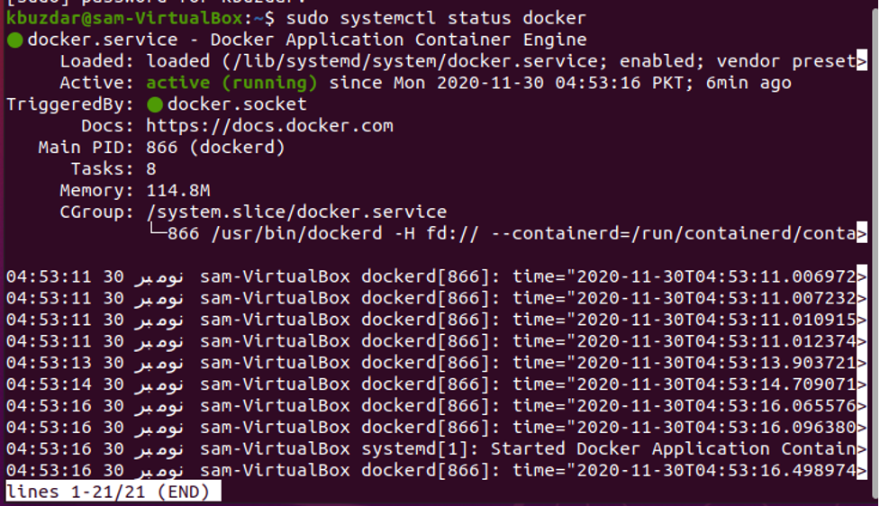 In this step, we will guide you that how to give certain permissions to any user using the Docker tool. You can replace “samreena” with the account name used to whom you are giving specific permission. However, run the following command to do this: