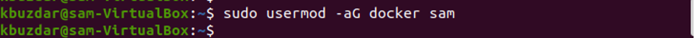 $ sudo usermod -aG docker Samreena