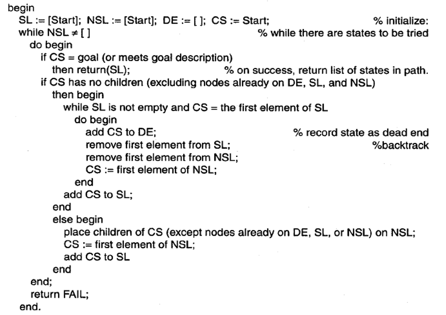 SL: for the state list, lists the states in the current path being tried If a goal is found, SL contains the ordered list of states on the solution path.