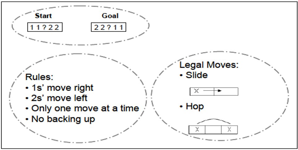 Problem Solution/ Goal State: It means what is required as an output or what would be considered as the correct solution to the given problem. For example, in the mouse maze problem, the solution state is mouse reached the cheese.