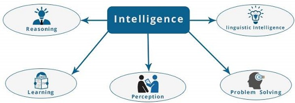 Intelligence is an intangible part of our brain which is a combination of Reasoning, learning, problem-solving perception, language understanding, etc.